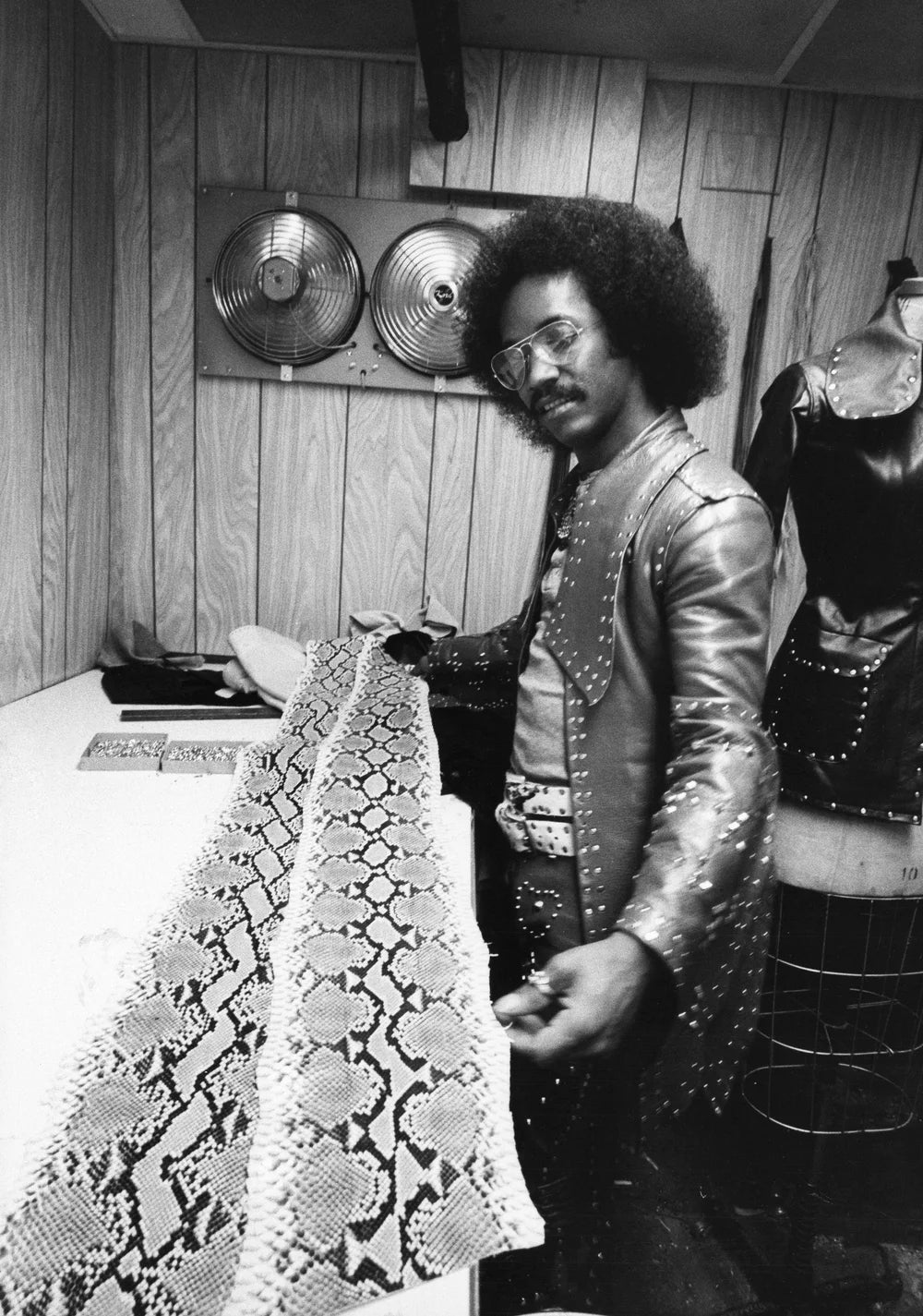 Leatheracci (formerly Calvin the Leather Man) was founded by designer Calvin Durham in the late 1960s. Calvin designed Rock N’ Roll gear for numerous musical legends including Jim Morrison, Peter Frampton, Jimi Hendrix, The Rolling Stones, Sammy Davis Jr., Teena Marie, Bootsy Collins, George Clinton (to name a few). Calvin has designed and constructed leather and denim pieces that have defined the look of Rock N’ Roll. He got his start as a hair and makeup artist in NYC in the early 1960s where he befriended designers such as Halston. He used his artistic talent to teach himself how to design and make garments, starting first making his own clothes. His technique is unique in that he uses little machine stitching, but instead constructs his garments using studding and lacing to build the form. He continues to work in his NYC studio making custom pieces that are “completely bad ass”.